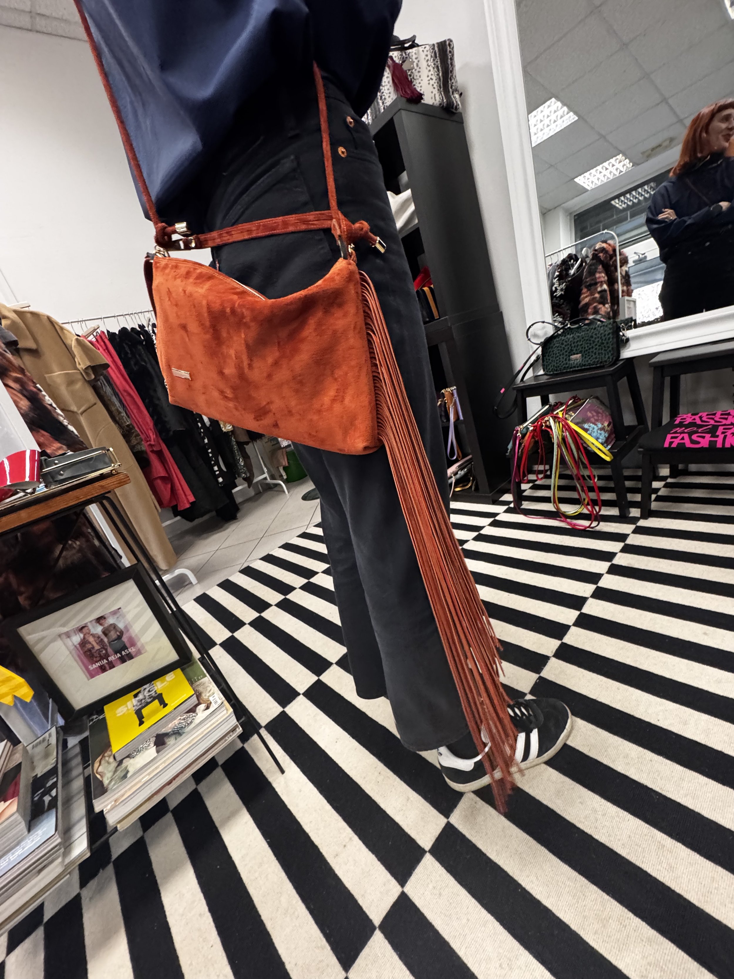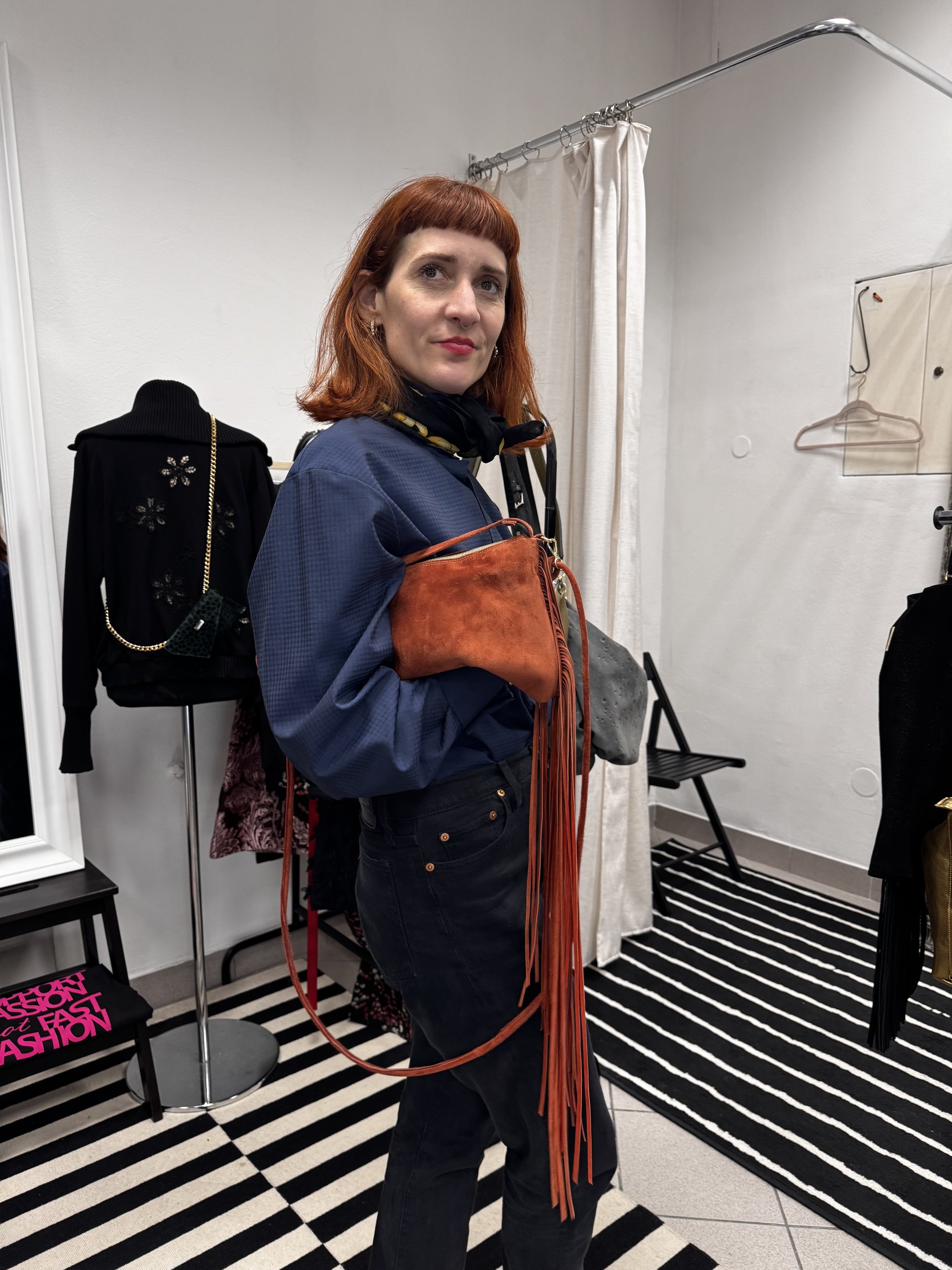 color: black fur + cotton in orange with patteren / barva: črno krzno + bombaž v oranžni barvi z vzorcem